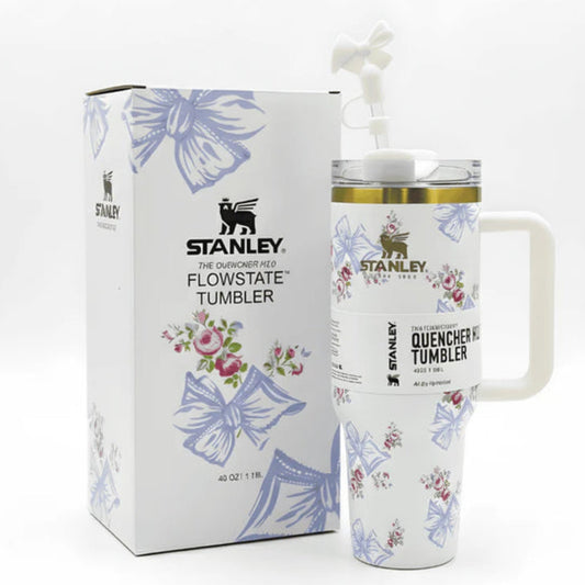 Elegant. Soft. Effortlessly Chic. The Stanley Quencher H2.0 FlowState™ Beaux Blue Bow Floral Edition is...