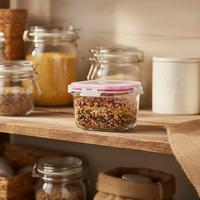 Compact 200ML square glass container with an airtight lid designed to keep spices, snacks, condiments, and small portions fresh and protected. Made from food‑safe transparent glass for easy visibility, it resists odors, stains, and chemical leaching. Microwave‑safe (glass only) and easy to clean, this sturdy container fits perfectly in spice racks, fridge doors, cabinets, and pantry shelves. Ideal for herbs, nuts, dips, sauces, chutneys, leftovers, or meal‑prep portions. A reusable, space‑saving storage solution for organized, clutter‑free kitchens.