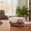 440ML square glass container with airtight four-lock lid