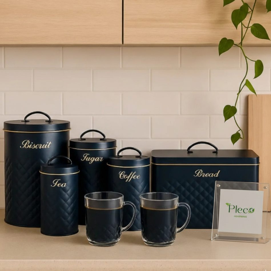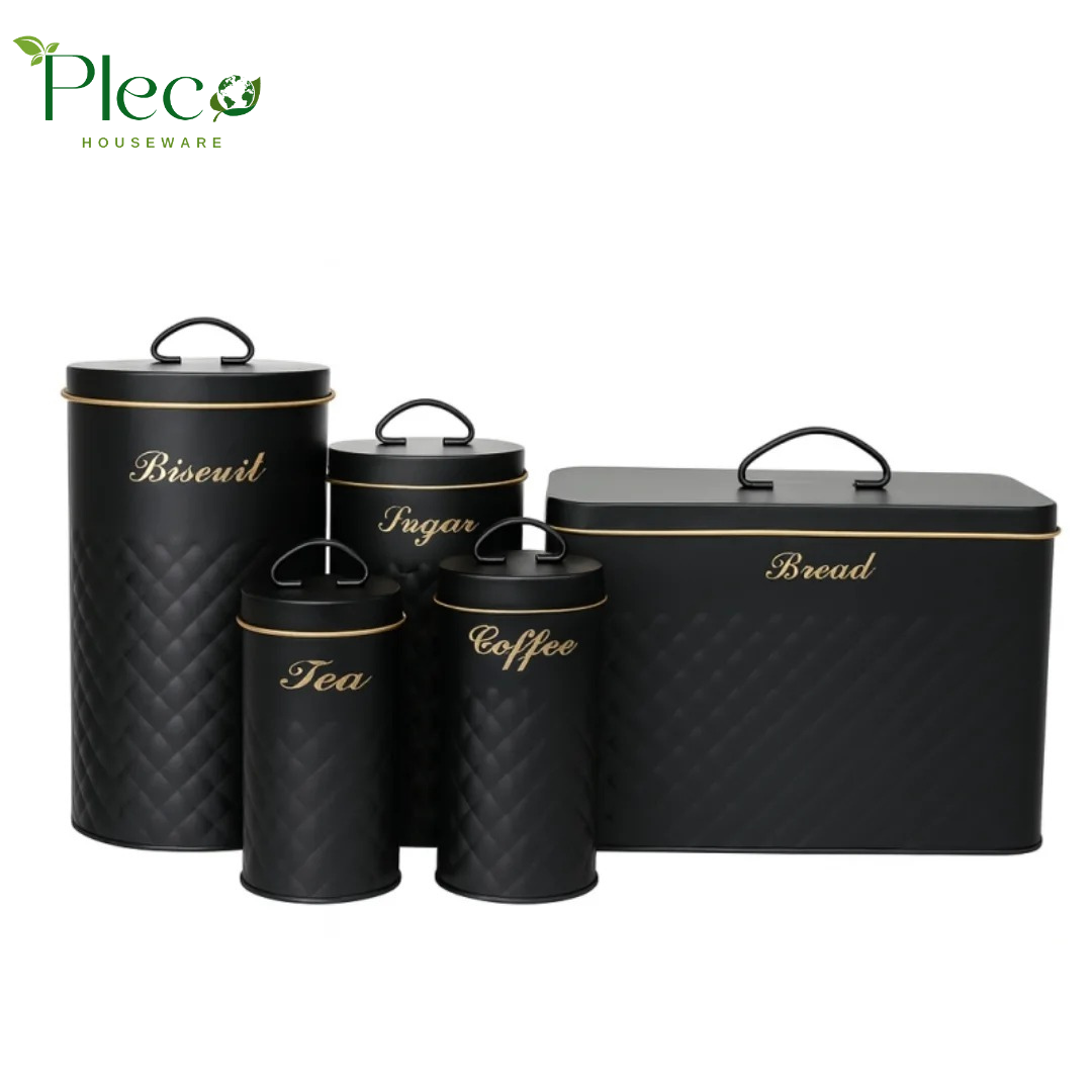 Crafted from durable, rust-resistant metal, this set keeps your essentials fresh while enhancing your countertop aesthetic.