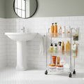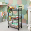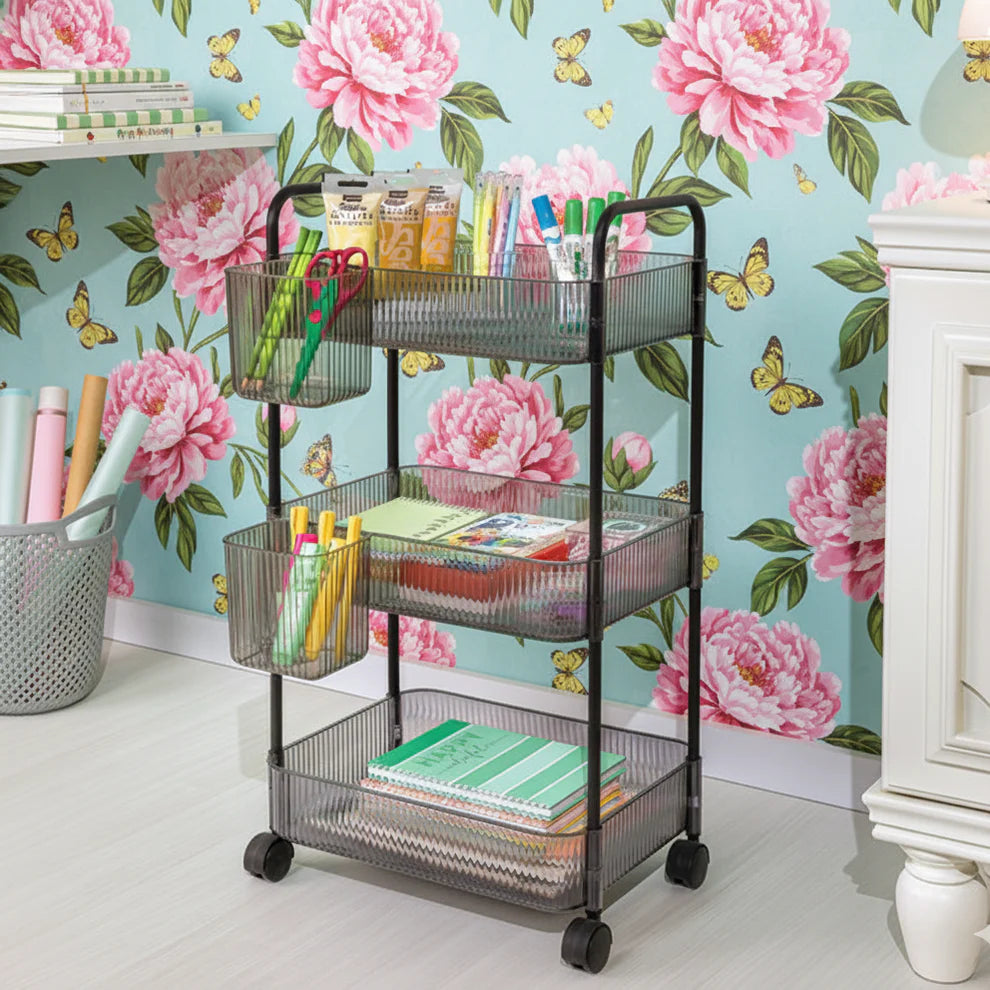 Modern 3-tier rolling trolley with ribbed acrylic shelves and a sturdy metal frame