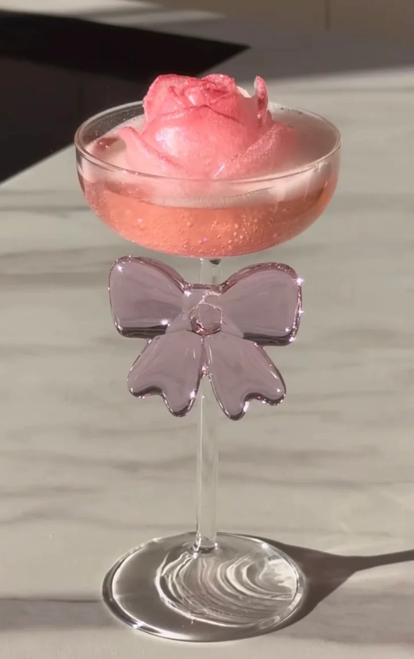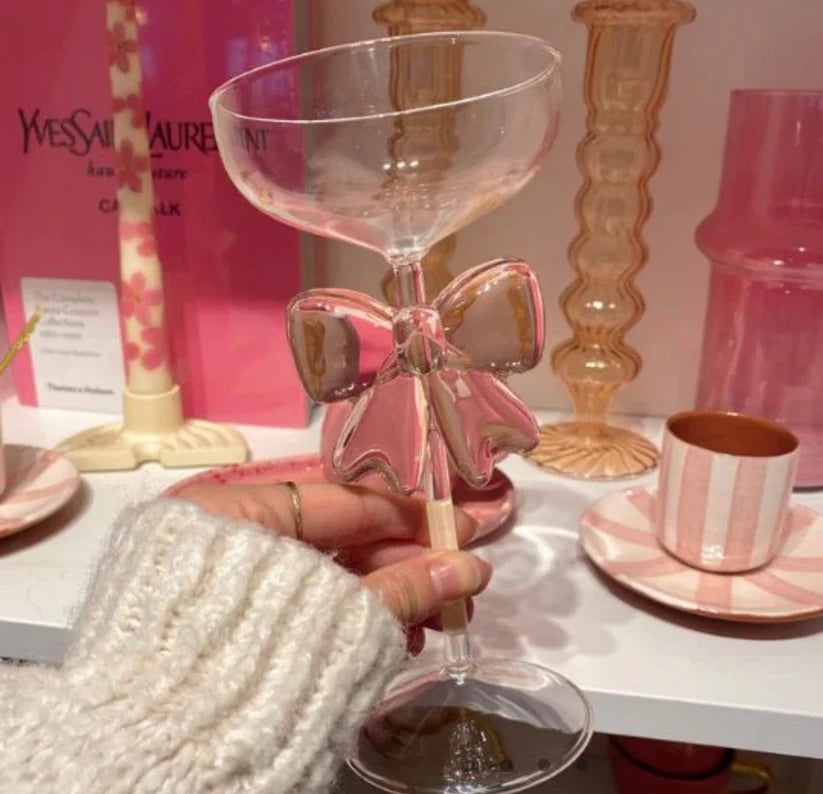The Exquisite Pink Bow Coupe Glass features a beautifully crafted pink bow design with a refined coupe shape. Elegant, stylish, and visually striking, this glass adds a luxurious charm to desserts, mocktails, and special table settings. Perfect for aesthetic dining, gifting, and modern home décor.
