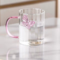 High Borosilicate 3d Butterfly Striped Glass Cup Creative Colored Handle Glass Mugs 1 piece