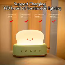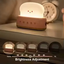 Kawaii LED Toast Lamp – USB Rechargeable Nightlight for Bedroom & Kids