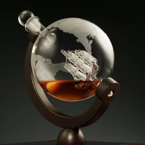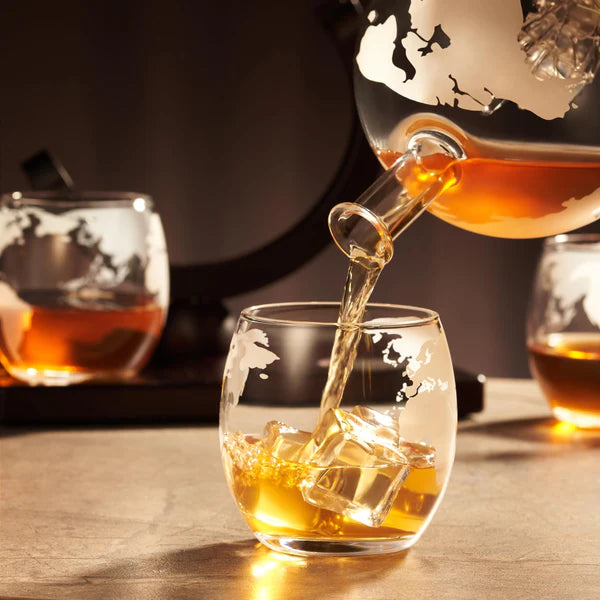 Luxury Globe Decanter Set + 4 Crystal Premium Glasses