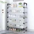 Narrow Shoe Rack Shoe Storage Shoe Racks Stand Shelf 5 Tier with Door Boxes Stackable Clear Lightweight Rust Proof Space Saving Durable High Capacity for Dormitory Transparent