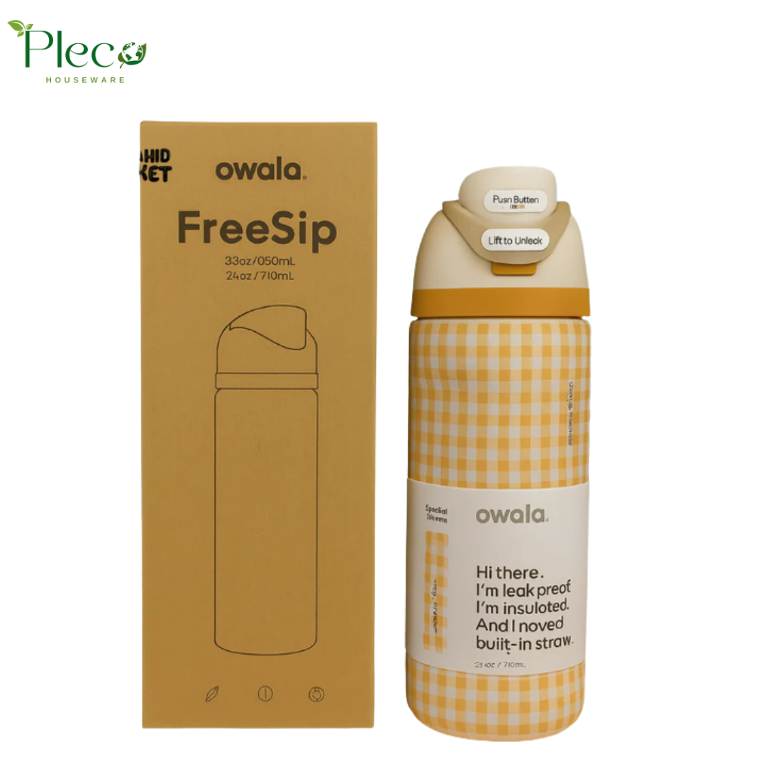 Owala FreeSip 24oz Water Bottle - Mustard Ghingham