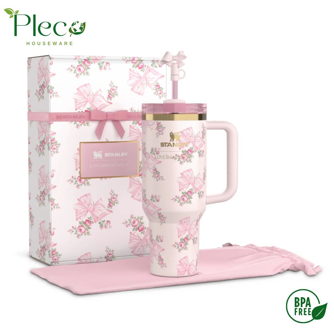 The Stanley X LoveShackFancy Holiday Quencher 40oz - Rosa Beaux Pink (Gift Box)